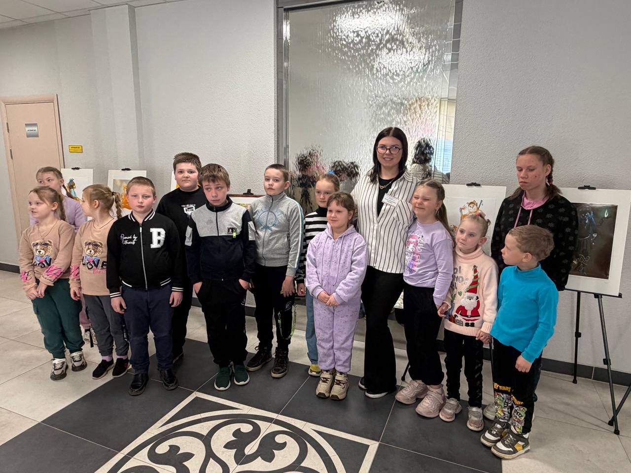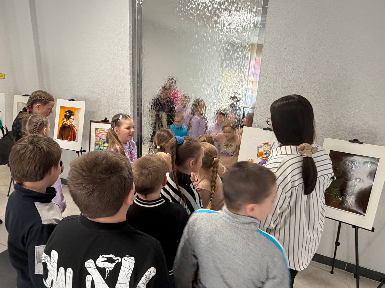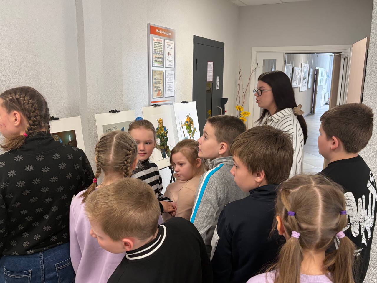 ГУК «Березинская центральная районная библиотека» посетила группа воспитанников оздоровительного лагеря «Юный патриот» Поплавской средней школы. Ребята поднялись в фойе второго этажа, где их вниманию была предложена выставка мультипликационных работ Александра Кудряшова. Пространство этажа преобразилось и стало напоминать настоящую творческую мастерскую, наполненную волшебством искусства. Библиотекарь детско-юношеского сектора подробно рассказала детям о биографии художника: как он нашёл свой путь в живописи, какие этапы прошёл на пути к профессиональному признанию, а также о его уникальных картинах. Особое внимание уделили тому, что Александр Кудряшов работает в нашей библиотеке, что делает выставку ещё более значимой для коллектива и посетителей.