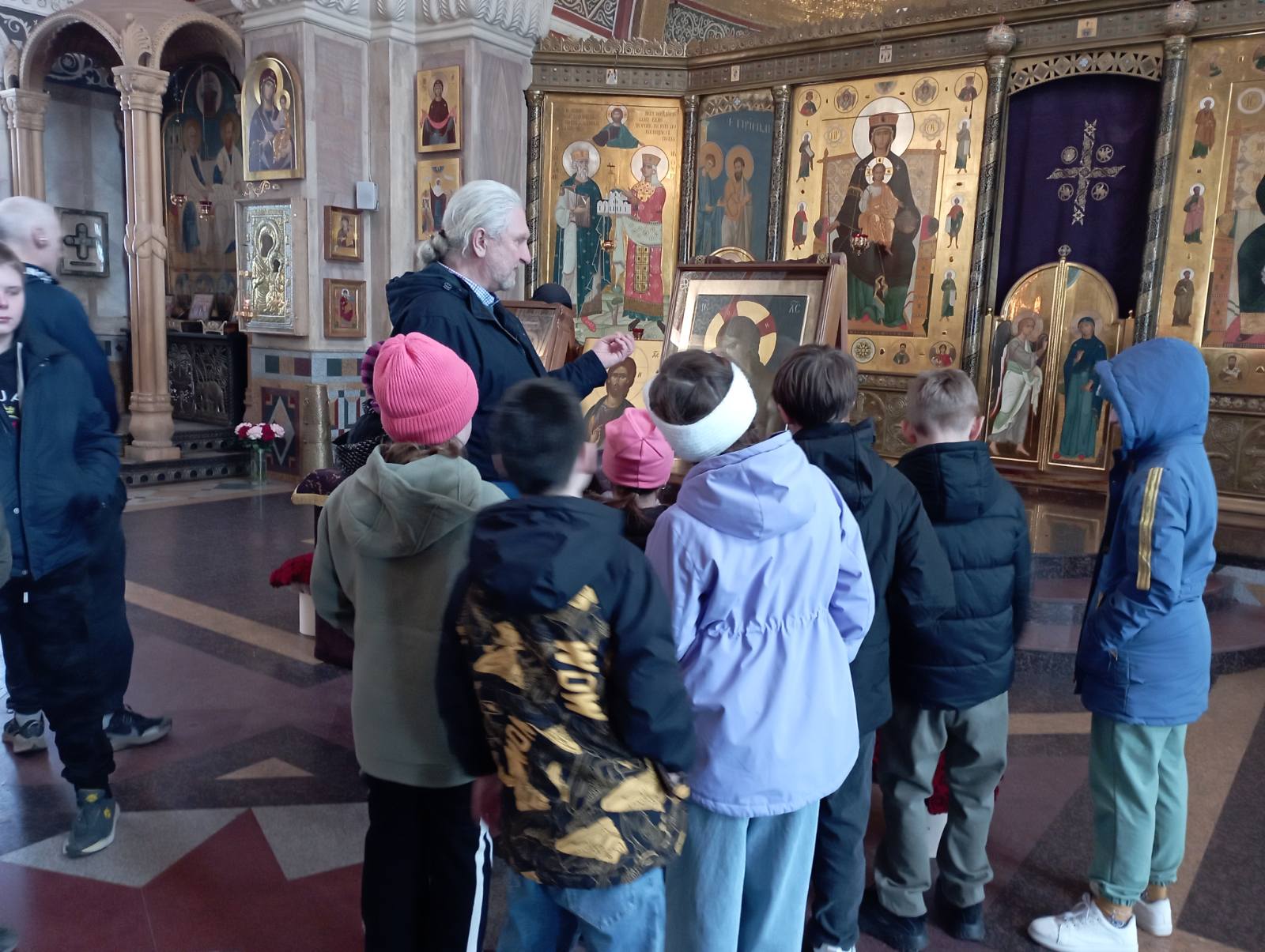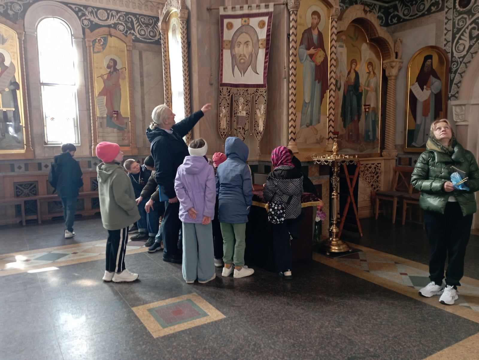 Совершив экскурсию и прослушав духовную беседу, ребята узнали, что такое храм, монастырь, иконы, фрески, иконостас, царские врата, таинства, причастие, Заповеди Божии, грех, покаяние…