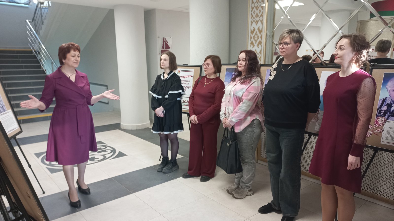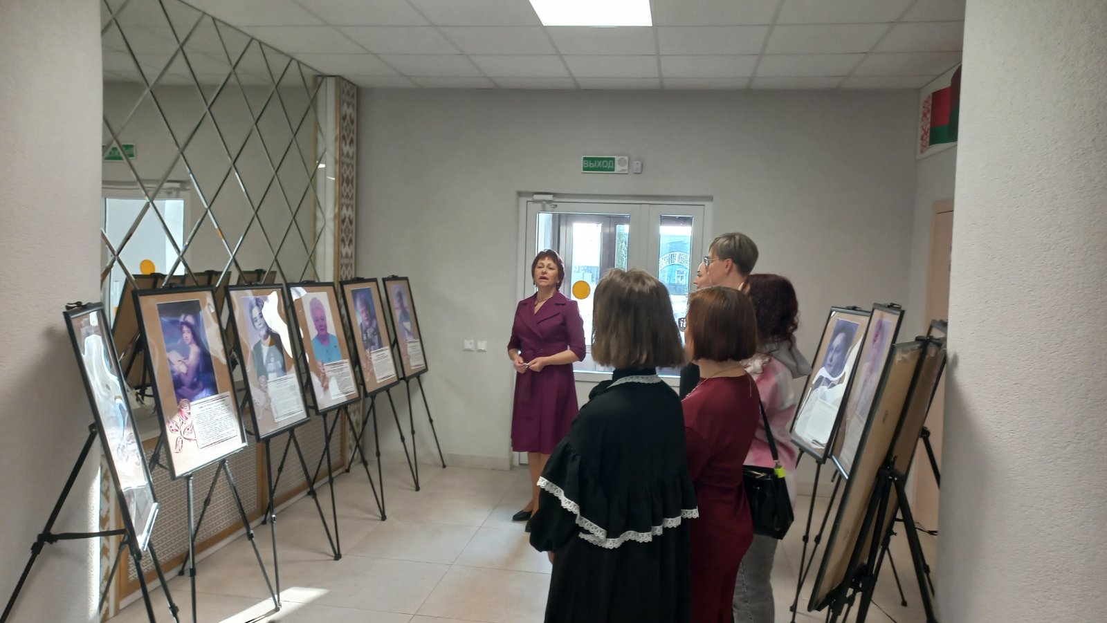 В честь Года белорусской женщины – 2026 в Березинской центральной районной библиотеке продолжает функционировать портретная выставка - экспозиция «Женщины, которыми гордится Березинский край». Сегодня выставка была представлена участницам клуба особенных мам «ПроРАСсвет». Среди звучных женских имён: наследница березинских землевладений графиня Анна Потоцкая, партизанская радистка Вера Шрейн, кандидат медицинских наук Элеонора Капитонова, сестры-ученые с докторскими званиями Светлана Винокурова и Людмила Белякова, чемпионка СССР по велоспорту в гонке на треке, серебряный призёр чемпионата мира в Монреале Валентина Сахончик-Смирнова, легендарная трактористка, обладательница именного трактора от Президента РБ Татьяна Захожая и другие. Интересные факты их биографий - свидетельство того, что березинская земля богата умными, талантливыми, трудолюбивыми женщинами.
