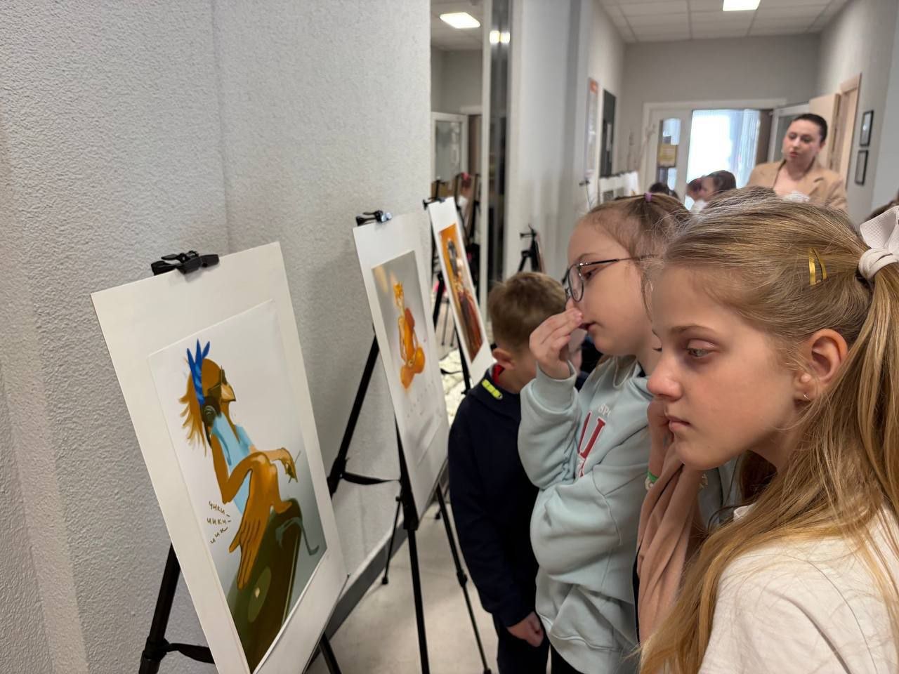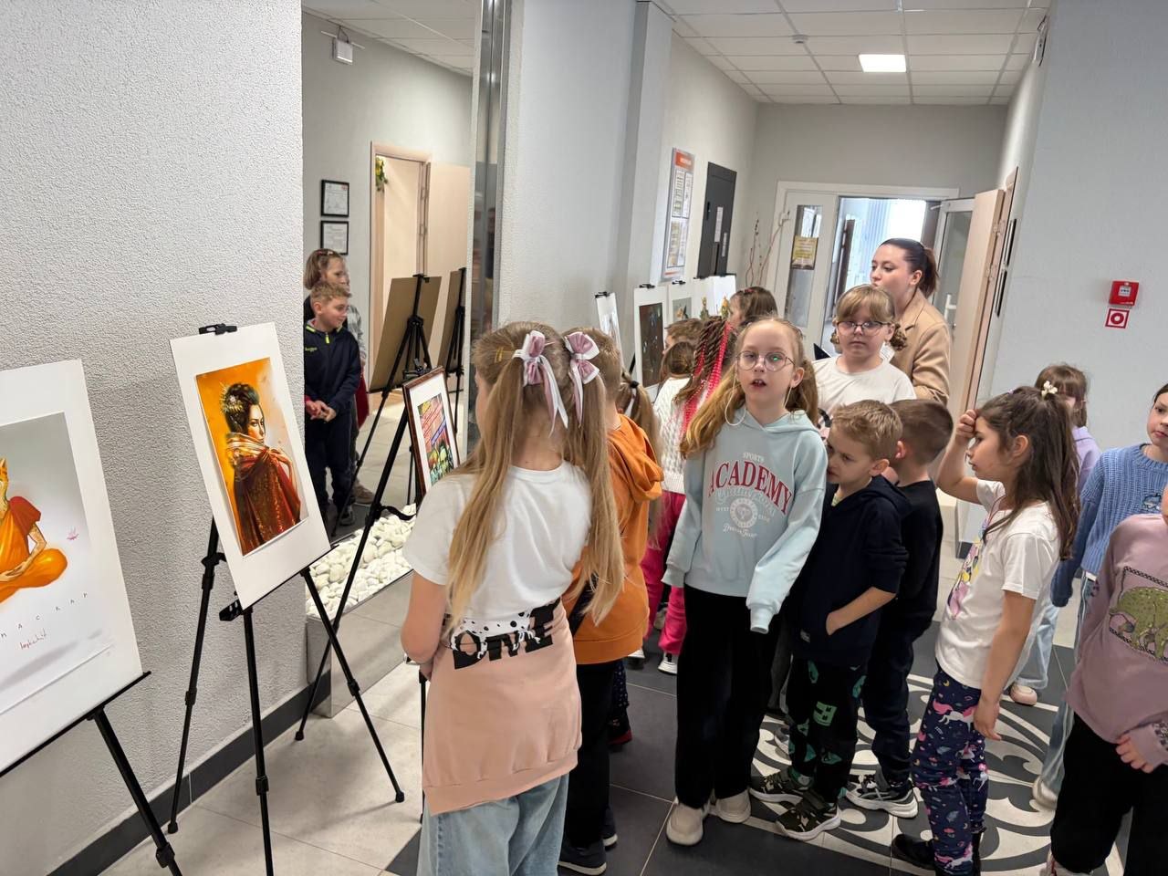 Школьники с живым интересом изучалиработы, задавали вопросы о техниках рисования и творческих планах художника.Встреча стала значимым событием,показавшим детям, как настойчивость и любовь к искусству помогают превратить увлечение в дело жизни.