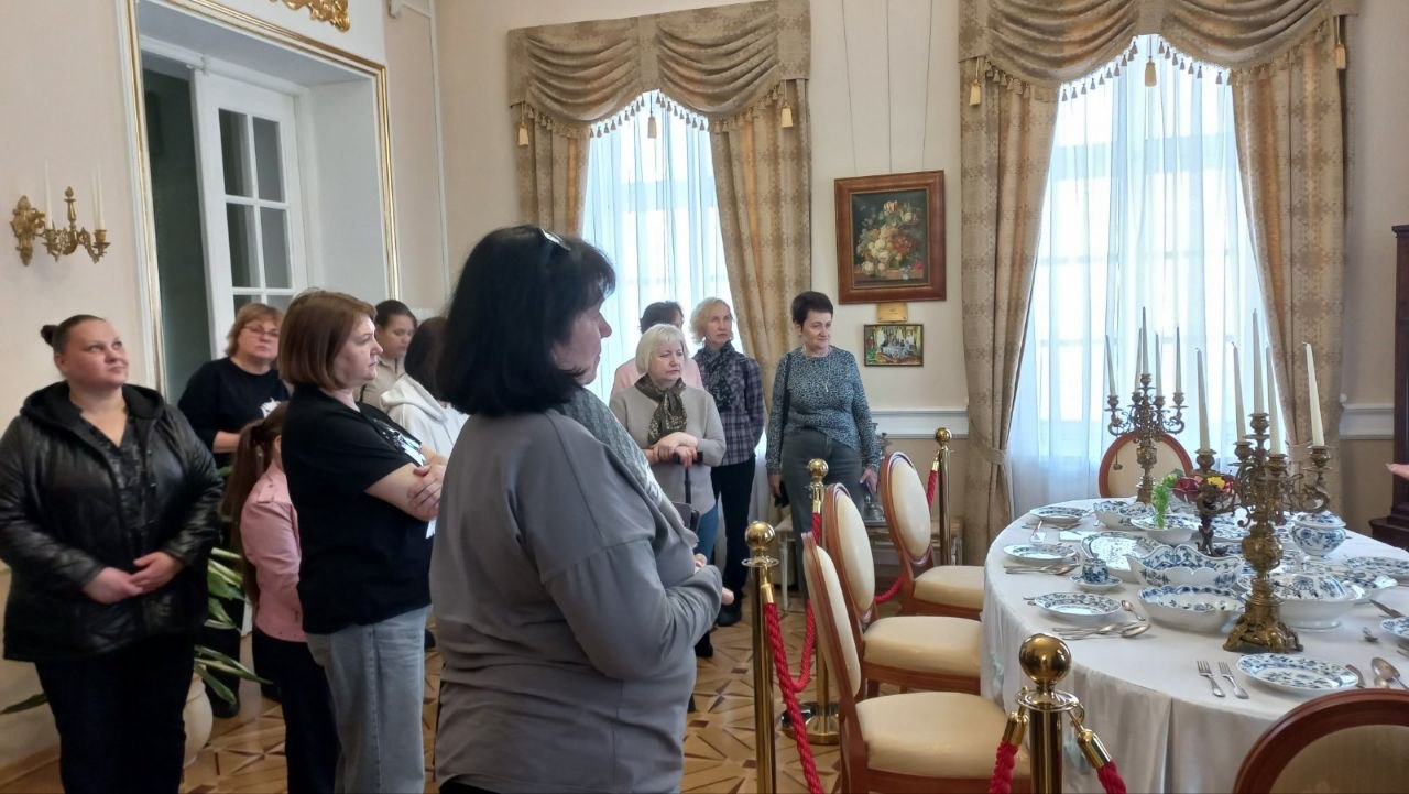 Экскурсавод правёў вандроўцаў па раскошным залах, адкрыў сакрэты адносін Пацёмкіна і Кацярыны II, распавёу пра тое, як у Палацы прымалі саму імператрыцу. Цікава было ўбачыць сталовую, буфетную, дамскі будуар, кабінет князя Пацёмкіна. Пабываўшы ў палацы можна лёгка прадставіць сабе побыт шляхецкай шляхты XVIII-XIX стагоддзяў, убачыць сталовыя прыборы, сервізы, посуд, збор кніг і карцін, старадаўнія прадметы інтэр'еру – гадзіны, падсвечнікі, люстэркі, шкатулкі, статуэткі. Для аднаўлення гістарычнай абстаноўкі выкарыстоўвалася як антыкварная мэбля, так і вырабленая на заказ.