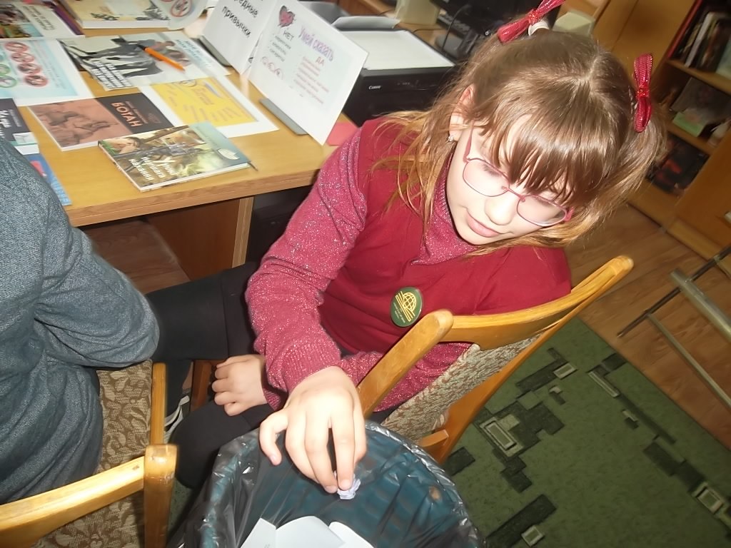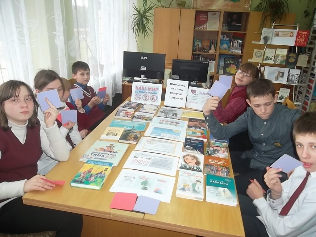 В рамках Недели моды на здоровье «Будь здоровым – модно!» в помещении Ушанской сельской интегрированной библиотеки ГУК «Березинская центральная районная библиотека» была проведена со школьниками престиж-акция «Школьнику не к лицу вредные привычки». В ходе мероприятия ребята определяли, что относится к вредным привычкам, а что к полезным. После им было предложено записать на красных карточках свои хорошие привычки, а на фиолетовых – плохие. Карточки с плохими-вредными привычками дети смяли и выбросили в мусорное ведро, как бы избавляясь от них, а карточки с хорошими-полезными привычками оставили на будущее в приоритете, обещая пополнять их хорошими делами.