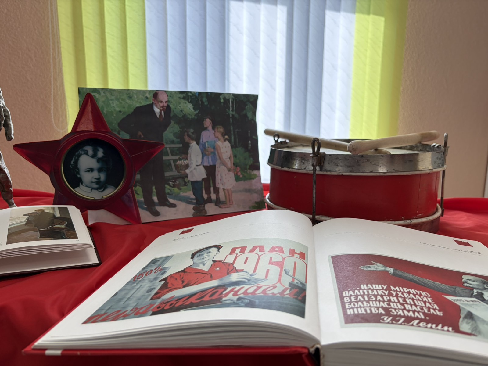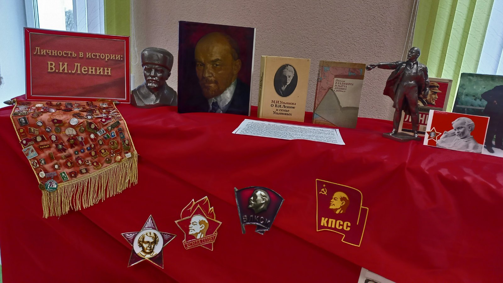 На выставке представлены книги о детстве Владимира Ильича, его родителях, о выборе жизненного пути, начале политической деятельности. Также его труды: сочинения, статьи, которые публиковались в первых газетах: «Искра», «Пролетарий», «Правда». Книжный ряд дополняют экспонаты той эпохи, когда ведущей силой общества была партия и комсомол, коллекция значков и марок СССР серии «Лениниана» с изображением вождя мирового пролетариата, а также открытки с лозунгами того времени. Фотография первого коммунистического субботника с участием самого вождя пролетариата напоминает о положенной традиции ежегодно в апреле проводить субботники по наведению порядка с массовым охватом населения.