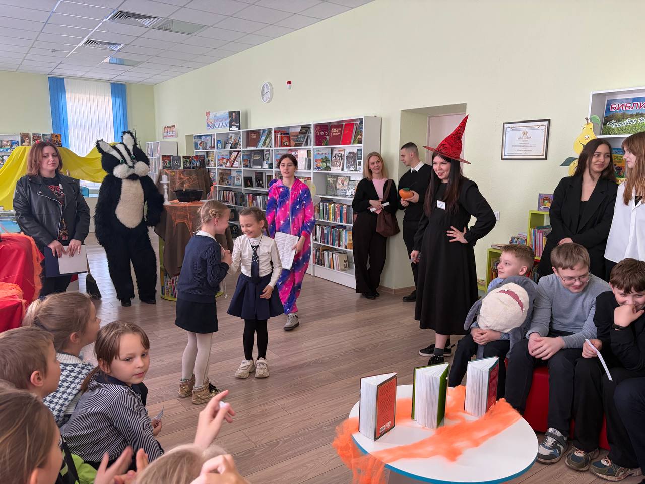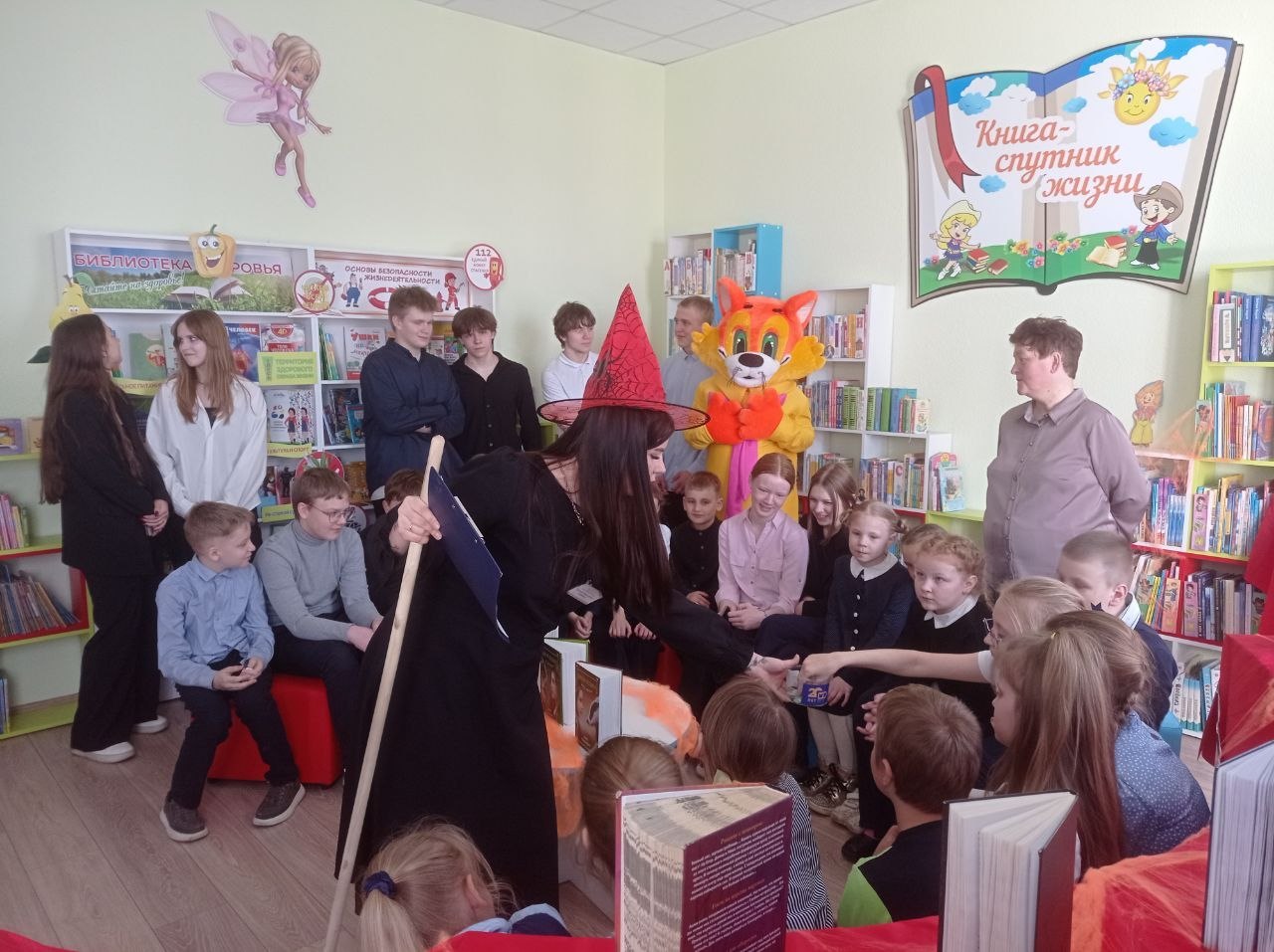 Первыми пожаловали на акцию городские школьники. Их встретила важная Библиотечная дама, далее ребята окунулись в таинственное приключение с волшебными существами.
