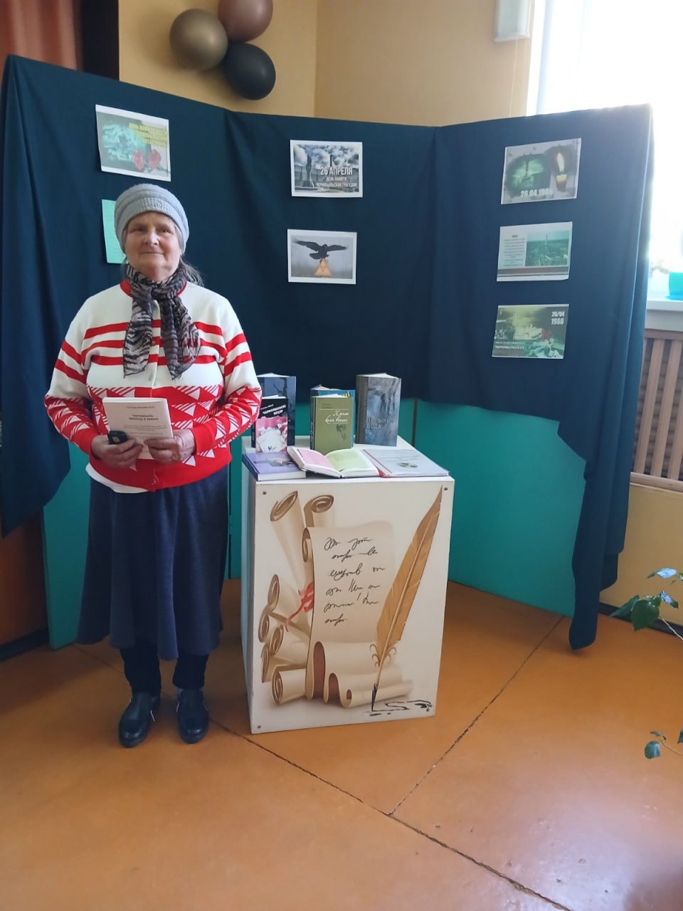 І ў заканчэнні чытачы бібліятэкі паўдзельнічалі ў раённых анлайн-чытаннях “Незагойнаю ранай нам Чарнобыль баліць” падчас якіх прагучаў верш Г.Шчур “Палыновы сум” у выкананні жыхаркі в.Багушэвічы Рыты Анатольеўны Яфрэменка і верш Э.Акуліна “Ад чаго ты самотны, бусел?” у выкананні навучэнкі Багушэвіцкай СШ Паліны Хадорчанка