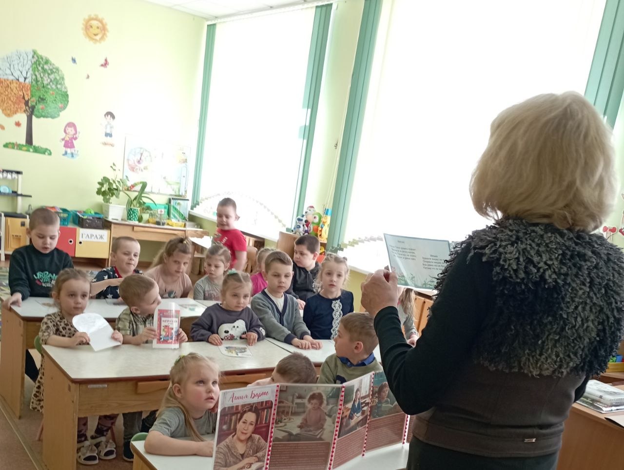 В рамках акции «Книжная няня в детском саду» в Погостской сельской интегрированной библиотеке ГУК «Березинская центральная районная библиотека» с воспитанниками детского сада прошло «Чытанне ў кружок». Библиотекарь рассказала ребятам о творчестве любимой детской писательницы Агнии Барто, затем малыши с удовольствием слушали стихи, рассматривали веселые картинки, разгадывали загадки, отвечали на вопросы викторины. Далее детям предложили устроить мини-театр и самим стать актерами: изобразить игрушки, инсценировать полюбившееся стихотворение. Мероприятие прошло весело, интересно, с активным участием ребят.