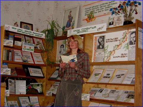 Новацией 2007 года стала экспозиция "Наши знаменитые земляки", где на отдельных стеллажах представлены стенды с портретами и визитными карточками известных земляков, информдосье, папки и альбомы с собранными материалами об их жизни и творчестве, фотографии. Это поэт-журналист, чье имя носит библиотека – Иван Маркевич, писатель ХІХ века Мельхиор Ванькович, художник ХІХ века Валентий Ванькович. Материалы о жизни и деятельности известного земляка художественно дополнены мини-вернисажем "В. Ванькович: заветное", где представлены фоторепродукции фотографий картин земляка-живописца мирового масштаба из фондов частных и государственных музеев Европы, России, Литвы. Особое место в экспозиции посвящается члену Союза художников Евгению Ивановичу Тихонову, который каждое лето наведывается на ушанскую землю, и его отцу - заслуженному деятелю искусств Беларуси Ивану Тихоновичу, который здесь жил. Интерес посетителей вызывают визитные карточки с портретами талантливых людей ушанской земли, прославляющих ее в настоящее время. Среди них Владимир Павлович Маркевич - кандидат физико-математических наук, поэтесса-любительница Галина Дроздовская, нештатный корреспондент районной газеты Михаил Башаримов. Не забыли вспомнить о Владимире Шумском, погибшем при исполнении служебного долга в Афганистане: материалы о нем представлены на стенде памяти “Опаленный смерчем Афганистана”. Это фотографии, военный билет, награды, письма к матери и другие реликвии семьи Шумских.