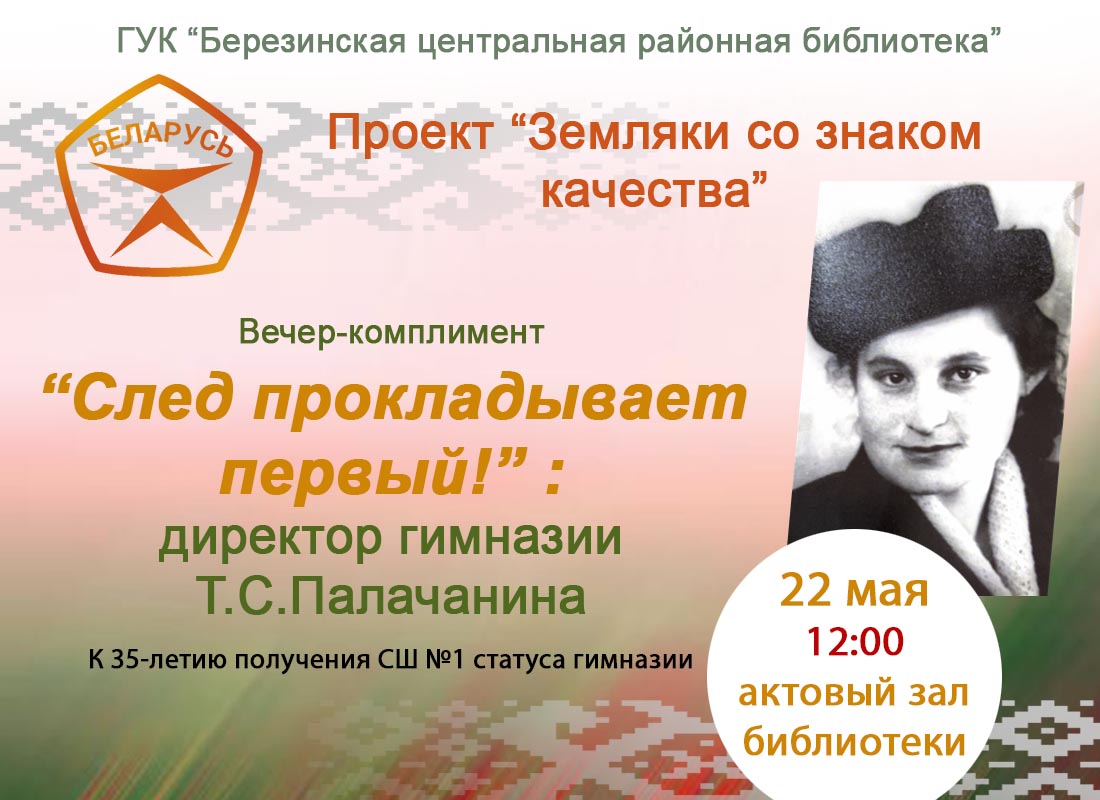 "След прокладывает первый!: директор гимназии Т.С.Палачанина"
